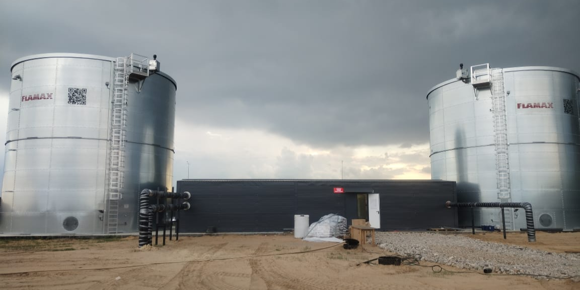 Ёмкости объёмом по 752 куб. м. разместили на единой площадке с блочно-модульной насосной станцией, в которой была предусмотрена водоподготовка.